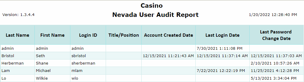 Shown below is an example of a Nevade User Audit report.